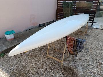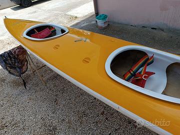 Canoa doppia, in vetroresina, in ottimo stato, sacchi di punta e poggiapiedi regolabili, no pagaie.