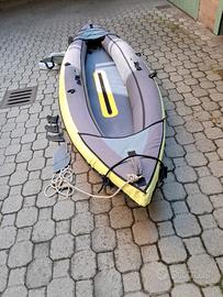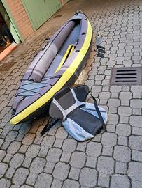 Canoa mt 3 , con pinne, cuscino gonfiabile, pompa con manometro. Canoa In buone condizioni senza danni, con tre camere d'aria. gonfiabili a 1,5 psi Manca la pagaia.