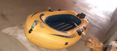 Vendo per inutilizzo canotto eurovinil cm 260 in perfette condizioni, con tre camere d'aria separate, paiolato in gomma gonfiabile, valvole a vite, completo di pompa per gonfiarlo, remi smontabili e motore elettrico 12 volt, si smonta completamente, anche il supporto motore ed entra tutto in una sacca per il trasporto, perfetto per pescatori, camperisti, vacanze e gite al lago o al mare anche in giornata.