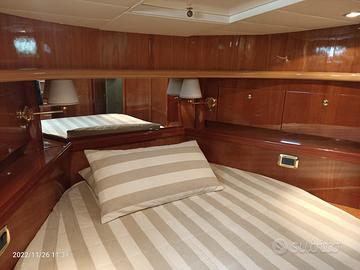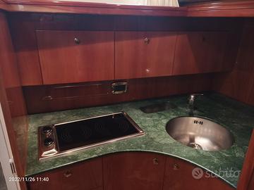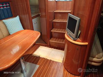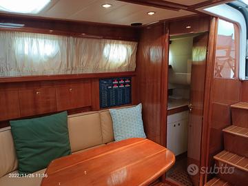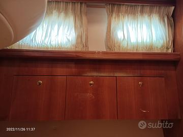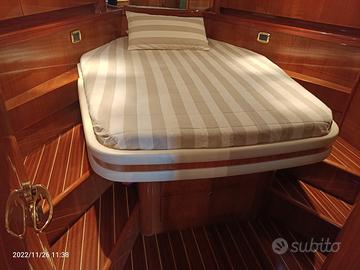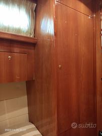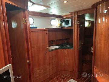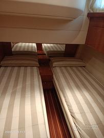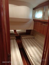 Anno 2002 Scafo VTR Cuccette singole: 2, Cuccette doppie: 1 Totale cabine: 2 WC: 2 (elettrici) Docce: 2 Equipaggiamenti interni Cucina induzione Microwave Frigoriferi: 1 + 1 in pozzetto Carica batterie Pompa di sentina elettrica Pompa di sentina manuale Dotazioni esterne Pozzetto in teak Passerella idraulica Cuscineria completa Scaletta bagno Doccia pozzetto Motorizzazione Caterpillar, entrobordo Diesel Ore moto: 800 Elica di prua Elica di poppa Equipaggiamenti elettrici Presa corrente a terra Generatore 3 KW Inverter Equipaggiamenti elettronici Ecoscandaglio Log-contamiglia Plotter cartografico Pilota automatico Bussola GPS VHF Impianto TV Lettore DVD Radio Lettore CD Altoparlanti interni Altoparlanti in pozzetto Coperture Tendalino rigido nel fly Il prezzo si intende commissioni escluse