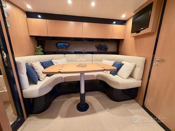 Gli interni, luminosi e ariosi, offrono una cabina armatoriale a prua con bagno indipendente, un salone con cucina e una cabina ospiti particolarmente ampia e confortevole, data la sua collocazione a centro barca.