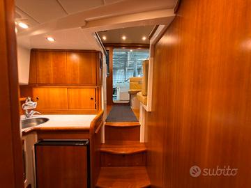 Anno 2004. Motori Yanmar 2 x 370 Angolo barra, Ecoscandaglio (Furuno), Pilota automatico (Cetrek + telecomando remoto), Plotter con antenna GPS (Simrad multifunzione), Radar (Furuno), Radio VHF (Furuno cornetta e altoparlante). Auto Dynamic Trim Interceptor (Zipwake), Caricabatterie, Elica di prua - bow thruster, Passerella (Idraulica), Piattaforma (con fondo in teak), Pompa per Acqua di Mare, Porta ingresso (in legno), Pozzetto Teak, Presa 220V banchina, Salpa Ancore Elettrico, Tavolo Salone Abbattibile, Winch tonneggio di prua. Aria condizionata, Boiler, Clima reversibile, Impianto acque nere (Dometik), Inverter (3000 W), Pavimento interno in legno, WC marino elettrico (Tecma con bidet interno).