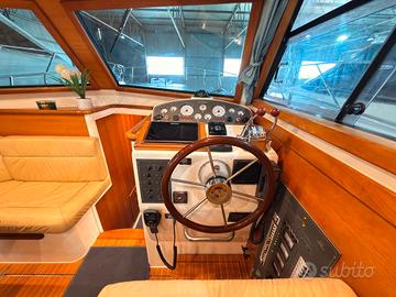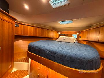 Anno 2004. Motori Yanmar 2 x 370 Angolo barra, Ecoscandaglio (Furuno), Pilota automatico (Cetrek + telecomando remoto), Plotter con antenna GPS (Simrad multifunzione), Radar (Furuno), Radio VHF (Furuno cornetta e altoparlante). Auto Dynamic Trim Interceptor (Zipwake), Caricabatterie, Elica di prua - bow thruster, Passerella (Idraulica), Piattaforma (con fondo in teak), Pompa per Acqua di Mare, Porta ingresso (in legno), Pozzetto Teak, Presa 220V banchina, Salpa Ancore Elettrico, Tavolo Salone Abbattibile, Winch tonneggio di prua. Aria condizionata, Boiler, Clima reversibile, Impianto acque nere (Dometik), Inverter (3000 W), Pavimento interno in legno, WC marino elettrico (Tecma con bidet interno).