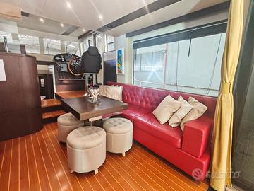 1 Matrimoniale italiana, 1 Matrimoniale francese, 1 Doppia in piano, 1 Cabina equipaggio, 2 Toilette con doccia, 1 Cucina, 1 Salone, 1 Toilette Equipaggio