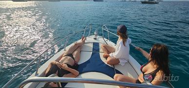 Barca a motore CAP 18 del Cantiere Capelli e motore 4 tempi Johnson 115 CV. Due ampi prendisole, uno a prua e uno convertibile a poppa, ribalatando gli schienali di guida e di poppa. Barca completa con: - Cuscineria completa bianca e blue originale; - Idroguida; - Verricello eletrico + catena e ancora Bruce da 5kg ; - Serbatoio carburante in acciaio; - Tavolo in legno marino ribassabile per allungare il prendisole di prua, completo di cuscino originale; - Doccetta acqua dolce a poppa; - Scaletta di poppa in teak; - Stacca-attacca batteria; - Luci di via; - Quadro strumenti con indicazione Trim+ contagiri+ serbatoio e switch per sentina+doccetta+luci+verricello+clacson; - Dotazione d’emergenza per 4 persone; Aggiunte dalla stagione 2025 (4900 euro di lavori/impianti dimostrabili con fattura), tra cui: - Elica nuova in acciaio; - Batteria nuova 74Ah; - Riordino impianto elettrico di bordo; - Stereo marino Clarion con doppie casse; - Tendalino fisso in acciao a 3 archi in Blue Navy; - Levigatura legni; - Installazione piano Plexiglass Fume’ con porta bibite; - Timone di guida; - Tagliando completo motore (olio\candele\filtro e prefiltro\zinchi\girante\olio timoneria idraulica); - 4 Lucchetti marini in acciao per chiusura gavoni. Usata solamente nel periodo estivo e rimessata ogni fine stagione in Cantiere Nautico ad Olbia. Viene venduta con antivegetativa e pronta al varo per la stagione. Prezzo leggermente trattabile. Disponibili anche altre foto per dettagli. Contatto solo su Whatsapp o messaggi su Subito.it.