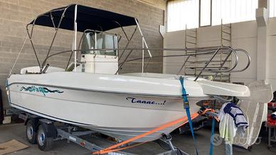 ULTIMO ANNUNCIO, poi sposterò la barca e la preparerò x l'estate; Vendo x motivi familiari, causa inutilizzo, barca open tenuta maniacalmente, senza alcun graffio o ammaccatura o ragnatele del gelcoat, preparata nel 2024 a nuovo, impianto elettrico rifatto completamente, strumentazione completa, salpancora, doccia, pompa di sentina, esalatore, serbatoio inox 270 lt, motore Evinrude 200 cv H.O. configurato in centralina con olio XD 100, iniettori revisionati, perfetta, parte con un quarto di giro motore al minimo a freddo, 380 ore di moto, accessoriata di tutto, tendalino inox 4 archi, portaparabordi inox, dotazioni e luci di navigazione, ponte illuminato, doppia omologazione CE B/C, 9 posti. Carrello biasse Ellebi revisionato e pari al nuovo. Nessun lavoro, barca pronta e perfetta. Marche simili: Gobbi, Fiart, Cranchi, Marinello, Ranieri, Salpa, Rio, Saver