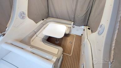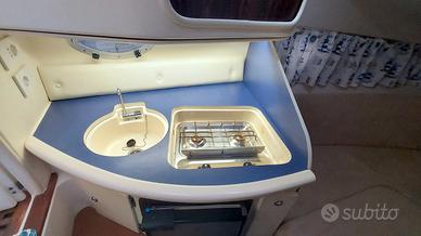 Accessori vari: scaletta a mare nuova e ribaltabile, seconda scaletta di ricambio, 5 gradini, impianto cucina con bombola a gas nuovo e tubi nuovi, pompa di sentina nuova automatica, seconda manuale da servizi, 2 porta canne, faretti subacquei blu, faretti in coperta con luce diffusa, plancetta di poppa maggiorata, pavimentazione in teak sintetico Plasdeck su pozzetto e plancetta, rollbar con 5 faretti led, faro orientabile su rollbar, tendalino doppio per chiusura camper completa o parziale.