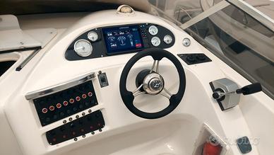 Impianti: impianto stereo Boss Marine da 450W con amplificatore, rete NMEA2000 con sensori vari ( livello carburante, livello acqua, portata benzina ), impianto boiler per acqua calda per doccia esterne e doccia miscelatore, salpa ancora elettrico Quick nuovo con ancora da 10Kg, comandi doppi per verricello, impianto elettrico 12V (rev.2024), inverter 12V - 230V da 500W Onda Pura Victron con presa 220V in cabina, doppia batteria Fiam Titanium 110Ah 960A di spunto, ripartitore di carica da 100A Victron Energy 3 uscite, pannelli solari fotovoltaivi 120W, su tendalino, caricabatterie banchina Victron con collegamento bluetooth, 3 prese 12V in cabina, impianto elettrico maggiorato con cavi nuovi e portata.