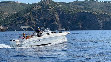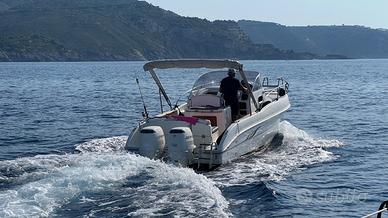 Vendo barca capelli 24 WA anno 2006 con 2 motori Johnson (Suzuki 4 tempi 115 Cavalli) tagliandati ogni anno. 3 batterie 100 Ah con stacca batteria. Salpa ancora elettrico con 50 metri di catena. Ancora di rispetto con 50 metri di cima. Idroguida Seastar revisionata 2024. Ecoscandaglio Lowrance. Luci di via. Bussola, WC elettrico. 1 Pompa di sentina fissa e 1 Pompa ausiliaria attivabile. Cucina a gas amovibile. Frigorifero amovibile. Tavolo interno cabina e tavolo posizionato a poppa. Tendalino con chiusure laterali (da sostituire una cerniera). Doccia acqua dolce. Cuscineria completa interna ed esterna in ottimo stato. Copri consolle e copri sedile di guida in buono stato. 2 Porta canne pesca. Zattera autogonfiabile 6 persone e dotazioni per la navigazione entro 12 miglia.
