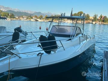 Vendesi barca capelli 32 wa anno 2015 con due motori Honda da 250 cv anno 2025 (praticamente nuovi ancora 4 anni di garanzia) con solo 20 ore di moto , scafo grigio , piano in teak, gps , inverter 3000 watt , frigo , vhf, radio , tv, boiler , elica di prua , salpancora elettrico con conta metri , luci di profondità a led, illuminazione pozzetto led, TTop acciaio, prese per mulinelli elettrici, doccia pozzetto e nel wc , serbatoio acque scure , 4 posti letto , wc elettrico , barca assolutamente perfetta , Si valuta eventuale permuta più conguaglio a mio favore , con barche o gommoni di valore medio