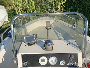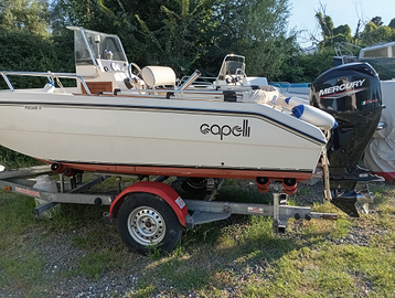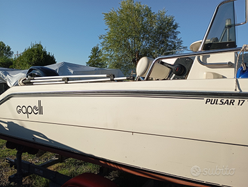 Capelli Cap 17, Mercury 40 PRO hp nuovo,70 ore certificate, elica acciaio originale ., carrello Umbra Rimorchi 1300 kg appena revisionato,arganello. Elettrico e manuale barca in ottime condizioni, finita stagione riportata a Parma per tagliando e manutenzione-