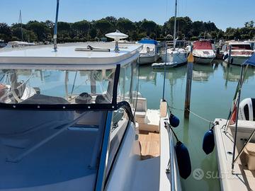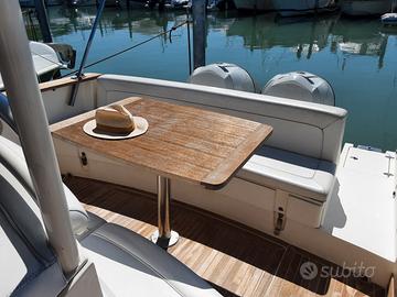 Completamente refittata tra il 2022 e 2025, con una miriade di lavori straordinari, ad es. cuscineria interna ed esterna nuova, teak massello in pozzetto 2022, t-top con tendalini nuovi 2025, dipintura scafo in blu perfetto 2024 (no wrapping), manutenzioni straordinarie ai motori 2024/2025, serbatoio carburante nuovo in acciaio appena montato, passerella manuale in carbonio 220cm, dotazioni obbligatorie e cime e parabordi tutto nuovo, e molto altro.