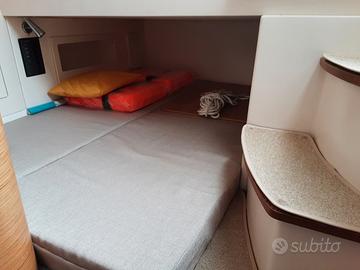 Inoltre bagno separato con wc elettrico appena cambiato, verricello elettrico con ancora e catena, GPS, flaps elettrici, 4 comodi posti letto, velocità max circa 37 nodi.