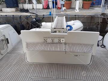 Pozzetto con pavimentazione con teak fuga nera Camminamento laterali (dx/sx) con pav. in VTR anti-scivolo Prendisole ponte di prua con cuscineria completa