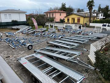 Il rimorchio è completamente regolabile, si regola ogni elemento, volendo si regolano anche la posizione dell'assale e la distanza tra le traverse. Meccanica tedesca e telaio prodotto in Italia.
