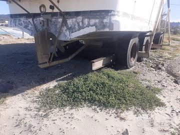 Carrello alaggio per barca fino a 12 metri, realizzato con putrelle da 20, 6 mozzi con ruote. Molto robusto completo di ralla.