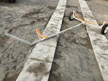 Vendo carrello alaggio per deriva laser il carrello è da sistemare funzionante ma vanno riviste le fasce che sorreggono la barca, le ruote le ho appena rifatte per il testo come da foto visibile lega navale a ostia