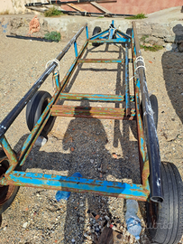 Vendo carrello varo e alaggio di lunghezza fuori tutto 5,50 metri,completo di 6 ruote ,ciascuna con camera d'aria, di cui 2 anteriori sterzanti .il carrello ha struttura in ferro pieno a C , e ha una sella sulla quale è possibile ospitare imbarcazioni da 2 a 8 metri di lunghezza .ottimo per spiaggia o cantieri.prezzo trattabile