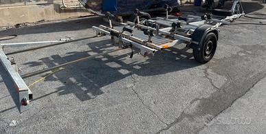 Carrello Adriatica Rimorchi di 6 metri, buone condizioni generali, grate di calpestio, fari led, sfrenato, revisione scaduta. Prezzo già ribassato