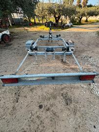 Vendo carrello ex omologato per gommoni fino a 550 mt e barche fino a 500 kg. Cimpleto di verricello, cavo d,acciaio con gancio, rulli, barra luci posteriori, impianto elettrico, ruotino anteriore e austema basculante. Non più omologato….. quindi utilizzabile in cantieri o proprietà private ed alaggi. Mai immerso in acqua, rulli e cuscinetti ok e totalmente regolabile ed adattabile al natante anche il pknte posteriore può essere regolato. Non ha i freni quindi nessun problema di blocchi improvvisi.