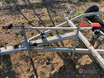 Vendo carrello non omologato rinforzato da cantiere lunghezza 5,60 metri. Presenti anche luci posteriori da cablare. Possibilità di avere anche il verricello elettrico con l'aggiunta di 50 euro. No perditempo, no contrattazione.