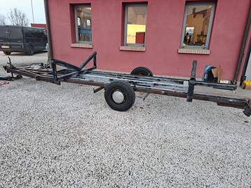 Carrello uso cantiere per imbarcazioni con scafo di 7 metri. Molto robusto e con 4 martinetti negli angoli. Prima utilizzato per sessa key largo 22 deck con 200 cv.
