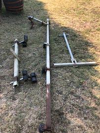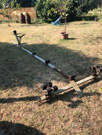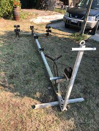 Carrello da spiaggia alaggio varo in ferro lunghezza 3,50m, larghezza asse posteriore 1,50m, completo di verricello, mancano le ruote e attualmente non assemblato. Alcune rulli sono bloccati. Buona base di partenza per essere ricostruito, Ideale per gommoni e piccole imbarcazioni
