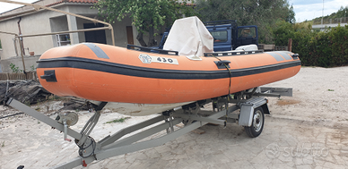 Gommone Mariner 430 a chiglia rigida, con TUBOLARI DA RIPARARE (Scollati in alcuni punti dallo scafo in vetroresina). Ottimo per chi è "smanettone" e sa fare riparazioni, con una spesa modesta avresti un pacchetto completo per trasporto e goderti pesca e bagni al largo! Chiglia in Vetroresina restaurata con cabina comando, strumenti e panca praticamente nuovi, serbatoio 33 Litri. motore Mercury America 25 cv gambo corto, revisionato e usato quasi sempre in acqua dolce, calotta di ricambio riverniciata, carburatore revisionato, comando remoto. Carrello Plini Gigliotti portata 600 kg, gomme e cerchi nuovi, luci e impianto elettrico nuovo, completamente restaurato. Vendo in blocco a 1500 euro: Gommone + Carrello 900 euro motore 600 tutto con accessori.