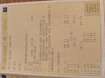 Carrello Marca Ellebi Mod. LBN 1000 per trasporto imbarcazioni Anno 1997 in perfette condizioni Massa complessiva 1300 Kg Revisionato il 18/03/2026 Targa XA.. non serve targa ripetitrice