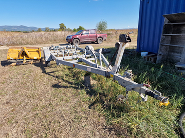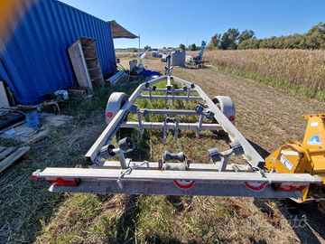 Carrello per gommone o barca da 1300 kg Longo, ottimo stato, autofrenante, revisionato settembre 2025, impianto frenante nuovo compreso tamburi e ganasce, impianto elettrico nuovo, gomme nuove. I nuovi impianti non hanno mai toccato acqua. Lunghezza circa 6,5 mt.