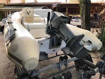 Vendo carrello Ellebi per gommone o barca leggera portata complessiva 390kg completo di libretto e motore Evinrude 15 anno 1984 sempre con libretto originale, fermo da qualche anno, funzionante all'ultimo utilizzo ma sicuramente motore da revisionare.