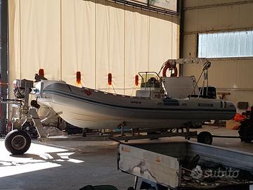 Vendo carrello da alaggio motorizzato operativo e funzionante. Il gommone che ha in foto è un LED 6,10 m più la lunghezza del motore, non in vendita ma per valutare la portata