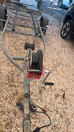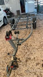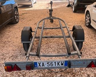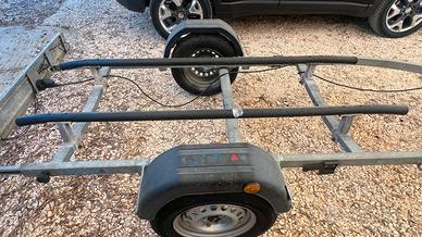 Ottimo carrello attrezzato con slitte no rulli per moto d'acqua. Immatricolazione 2019 ma utilizzato dal 2023. Telaio attrezzato trasporto moto d'acqua zincato a caldo, peso complessivo kg.650,tara kg.140,portata utile kg.510 lunghezza max mt.4,305,larghezza max mt.1,510 ruote 145/13tbs.