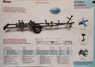 Carrello nuovo marca CRESCI modello N1000B-R con portata complessiva di 1.000 kg completo di dotazione di serie. Con traversa multirullo basculante per facilitare la discesa. Prezzo di listino euro 3.715 incluso iva e immatricolazione. PREZZO SCONTATO comprensivo di iva e immatricolazione euro 3.150. Per qualsiasi altra informazione anche whatsapp.