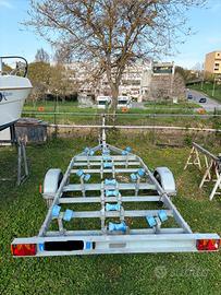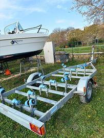 Come da titolo, vendo carrello rimorchio per barca come nuovo anno marzo 2023... condizioni perfette si vende per inutilizzo. Marca Pima modello TI15 simile a cresci ellebi. Telaio in acciaio zincato a caldo BASCULANTE .Rimorchi disponibili ad 1assi. Dotazione tecnica AL-KO (assale e repulsore) .Impianto frenante con retromarcia con sgancio automatico. Freno di stazionamento .Cavi freno Bowden Longlife AL KO muniti di rivestimento in materiale plastico PA12. Sospensioni a barra di torsione con ruote indipendenti. Dispositivo di aggancio con giunto a sfera con pulsantino di sicurezza. Impianto elettrico completo di fanale retromarcia e spina 13 poli. Ruotino pivottante diametro 48 mm. Cavetto di sicurezza. Parafanghi Dehan in lamiera stondata Massa totale: 1500 kg Portata utile: 1120 kg Tara: 380 kg Lunghezza telaio: 6800 mm Lunghezza max: 7790 mm Larghezza max: 2250 mm Ruote: 185 R14C Numero assi: 1 Per ricerca Motore Yamaha Suzuki Mercury Gommone