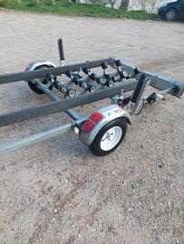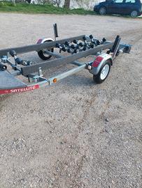 carrello satellite porta imbarcazioni 500 kg Custom .sempre e solo acqua dolce per bass boat caratteristiche carrello : - lunghezza 5mt - larghezza 1,73 - pneumatici 4.5-10c Customizzazioni : - barre in compensato Marino - calpestio in compensato Marino - boat buckle - cinghie a sgancio rapido - guide laterali carrello originale - 1.000 Carrello + accessori custom 1400