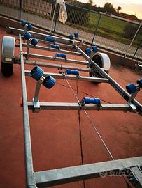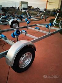 Carrello trasporto barche e gommone 10 Q a pieno carico completo di impianto illuminazione led, kit freno, kit lavaggio freno (impianto con attacco tubo per rilavare i freni dopo l'immersione parziale in acqua), rulli full, argano manuale.
