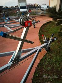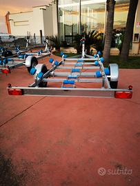 Carrello trasporto barche e gommone 10 Q a pieno carico completo di impianto illuminazione led, kit freno, kit lavaggio freno (impianto con attacco tubo per rilavare i freni dopo l'immersione parziale in acqua), rulli full, argano manuale.