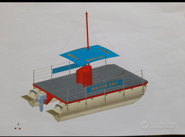 Come da titolo si propone in vendita catamarano lunghezza m. 7,50 larghezza m. 5,00; 35 mq calpestabili ! interamente costruito in acciaio. Persone trasportabili 13. Il prezzo NON comprende il motore, va montato un fuoribordo a seconda delle necessità. Per ulteriori informazioni contattare telefonicamente.
