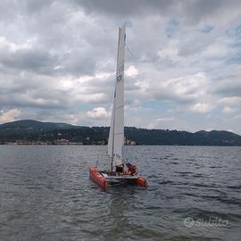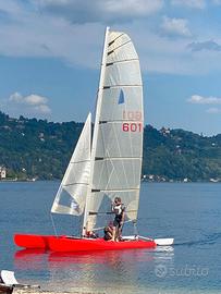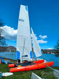 Vendo catamarano a vela Mattia Esse. Gli scafi e il trampolino sono in ottime condizioni. Le vele sono seminuove, in quanto hanno un paio di anni di vita. Il catamarano é quindi pronto all´uso e viene venduto per 4.500 €. Nel prezzo sono anche inclusi bompresso, gennaker, carrello di alaggio e una coppia di timoni di scorta. Caratteristiche tecniche: Lunghezza 5,48 mt, Larghezza 2,29 mt, Peso 125 kg, Velatura 17 mq