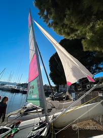 Dotato di randa e gennaker con le relative sacche potrai sfrecciare sull'acqua nemmeno fossi la luna rossa in men che non si dica.