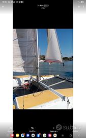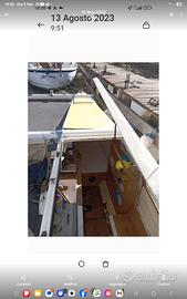 Breve descrizione: motore perfetto 10cv Honda, accensione automatica. La barca ha a sinistra un matrimoniale, tavolinetto da carteggio, wc con lavandino, oltre un altro piccolo vano ottimo per una cuccetta per bambini. A dx un letto singolo a prua, cucinino due fuochi con bomboletta, lavandino, cambusa. Vele : randa steccata, fiocco, gennaker. Albero alare. sartie , traversa centrale e strallo di prua seminuovi. Dotazioni: radio ricetrasmittente, pilota automatico, ancora bruce.Molti lavori necessari.(ma ne vale la pena!). Barca progettata dall ing Bergamini, prodotta negli anni 80 è stabile e veloce, visto il dislocamento di soli 600 kg che la fa "volare". Siamo riusciti a fare sci nautico a vela! Piccola cortesia no perditempo. Sono preferibili domande iniziali via sms. Barca visibile a Fiumicino presso il cantiere nautico di Mario Giua in via Pal Grande. La barca viene ceduta con la sola richiesta di saldare le spese di ormeggio, che attualmente ammontano a € 240 oltre ulteriori € 120 x ogni mese a contare da marzo compreso