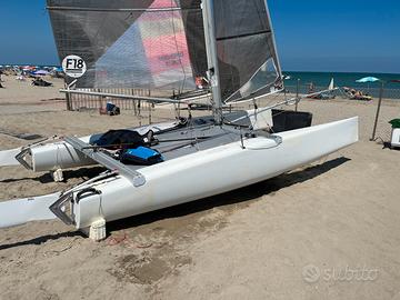 Vendo catamarano categoria F18 Capricorn AHPC (Australian High Performance Catamarans), barca molto robusta e marina. Estremamente sportiva, in stazza e in buone condizioni. Completa di due rande, fiocco e gennaker. Con carrello di alaggio Big Foot.
