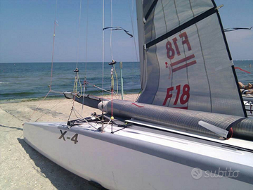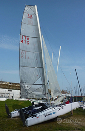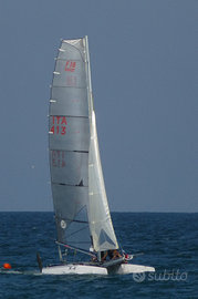 È completo di tutto, carrello alaggio, telo di copertura, randa, fiocco, gennaker, timoni, derive e stick in carbonio
