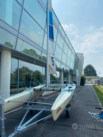 carrello per trasporto di attrezzature turistiche e imbarcazioni , del 1997, revisionato marzo 2025 Lunghezza m 5,790 Larghezza m 1,900 Catamarano usato completo di tutto, Lunghezza comprensiva di timone 4 metri e 70. Albero 7 metri