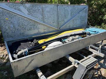 Imbarcazione pronta a navigare grazie a manutenzione regolare e scrupolosa, completa di accessori tra cui carrello stradale Ellebi.