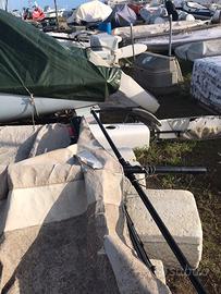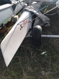 Catamarano hobie fx one ottimo stato due giochi di vele gennaker attrezzato harken fiocco autovirante avvolgifiocco sistema di recupero pole sotto trampolino mesh carrello big foot trapezio spectra paranco randa demoltiplicato prezzo intrattabile visibile anzio