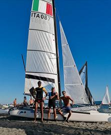 Dispone di 2 rande efficienti, la parte alta con colori bandiera italiana e numero 87, una randa più usata e riparata; 3 fiocchi e