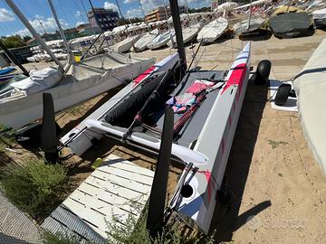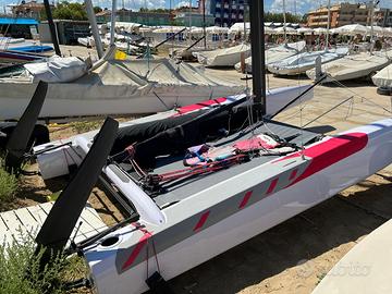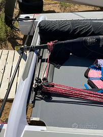 Catamarano S1 FULL CARBON di 15 piedi del 2022 pari al nuovo, usato pochissimo. Albero, scafi, traverse, derive e timoni tutto in carbonio. Il peso totale del catamarano da armato è di soli 75kg. Carrello di alaggio e varo Big Foot compreso. Telo di copertura su misura compreso. Randa e fiocco sviluppano la stessa superficie del Classe A classico. Catamarano molto divertente e reattivo. Per qualsiasi info contattare mio padre Amedeo al 3357406169 in quanto il catamarano è suo. Grazie mille