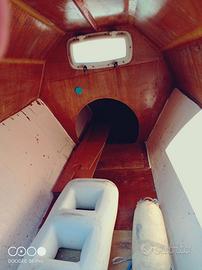 Lunghezza 6,30 mt, larghezza 3,80 mt, smontabile e carrellabile da auto media, due cuccette negli scafi, tughe rialzate, altezza interna 90cm, Randa e genoa in ottime condizioni, motore Yamaha 6cv gambo lungo, usato poco.
